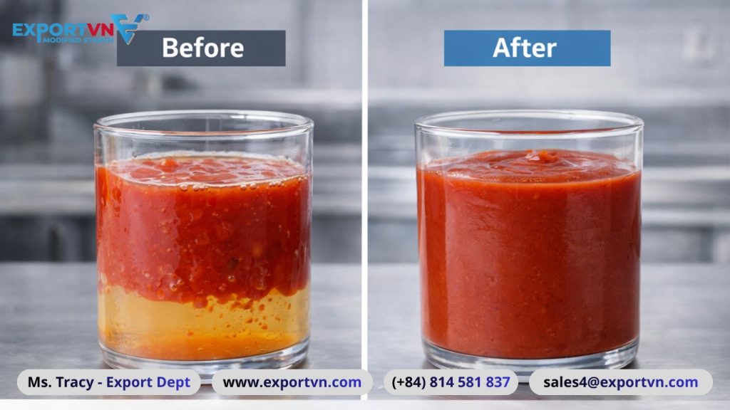 Syneresis is one of the most visible quality defects in ketchup. During storage, weak starch networks release bound water, resulting in phase separation. This issue is particularly severe in low-solids or reduced-sugar formulations.